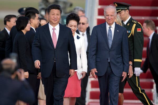 In 2015, Chinese President Xi Jinping and Vice President Joe Biden met at Joint Base Andrews in Maryland. Since becoming president, Mr. Biden has talked with Mr. Xi twice. Credit… Associated Press/Carolyn Kaster