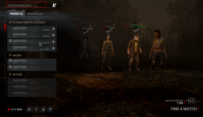 In Dead By Daylight, your player ID can be located in the upper left-hand pane of the Friends interface. Select the “Friends” symbol from the lobby to go here.